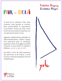 - Fabrice Dupuy, co-auteur avec Corinne Meyer de Par-delà, le premier ouvrage paru ce mois de la nouvelle collection bicéphale Yole des éditions du Palio
